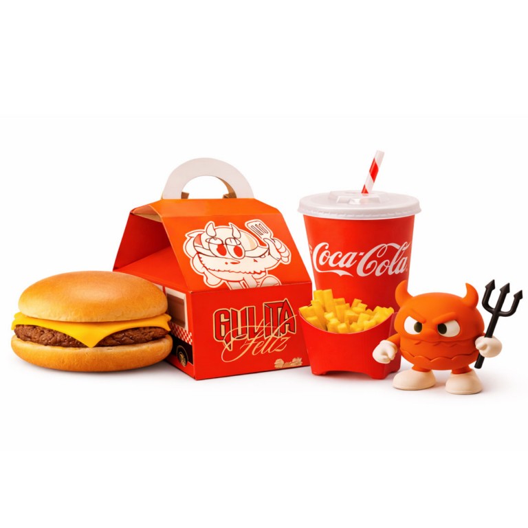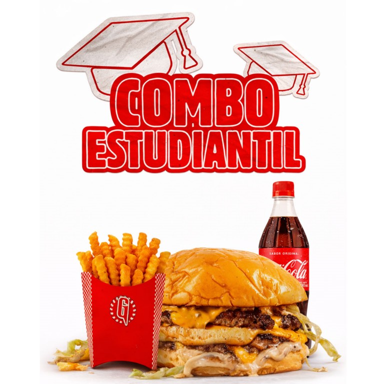 Hamburguesa simple con queso + papitas chicas + bebida + personaje de gulita colección.