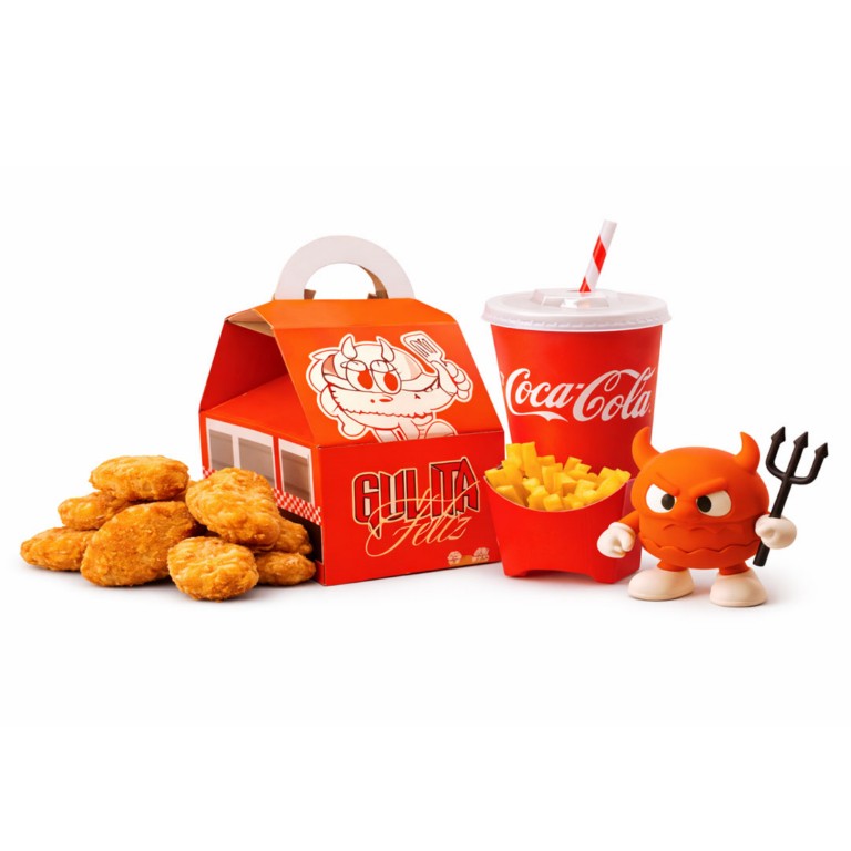 Nuggets + papitas + bebida + personaje de gulita colección.